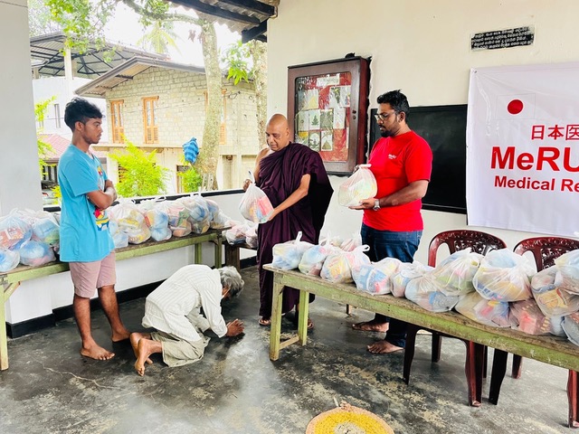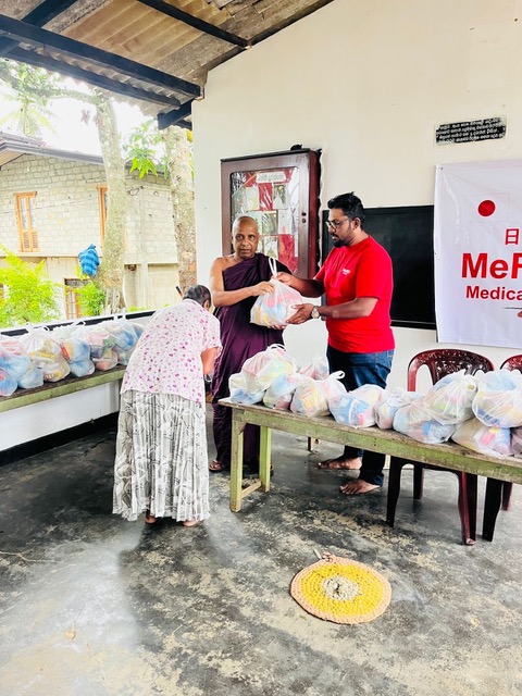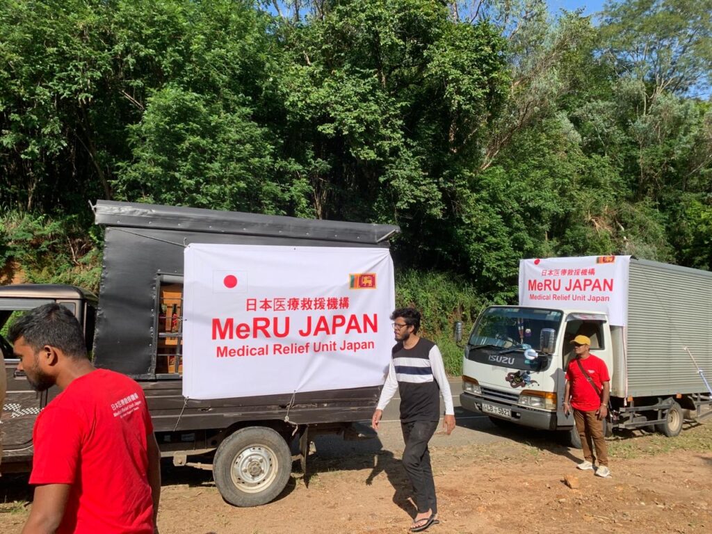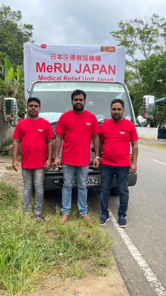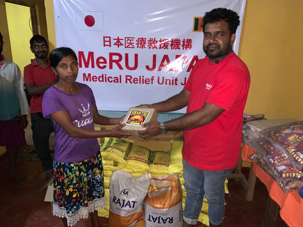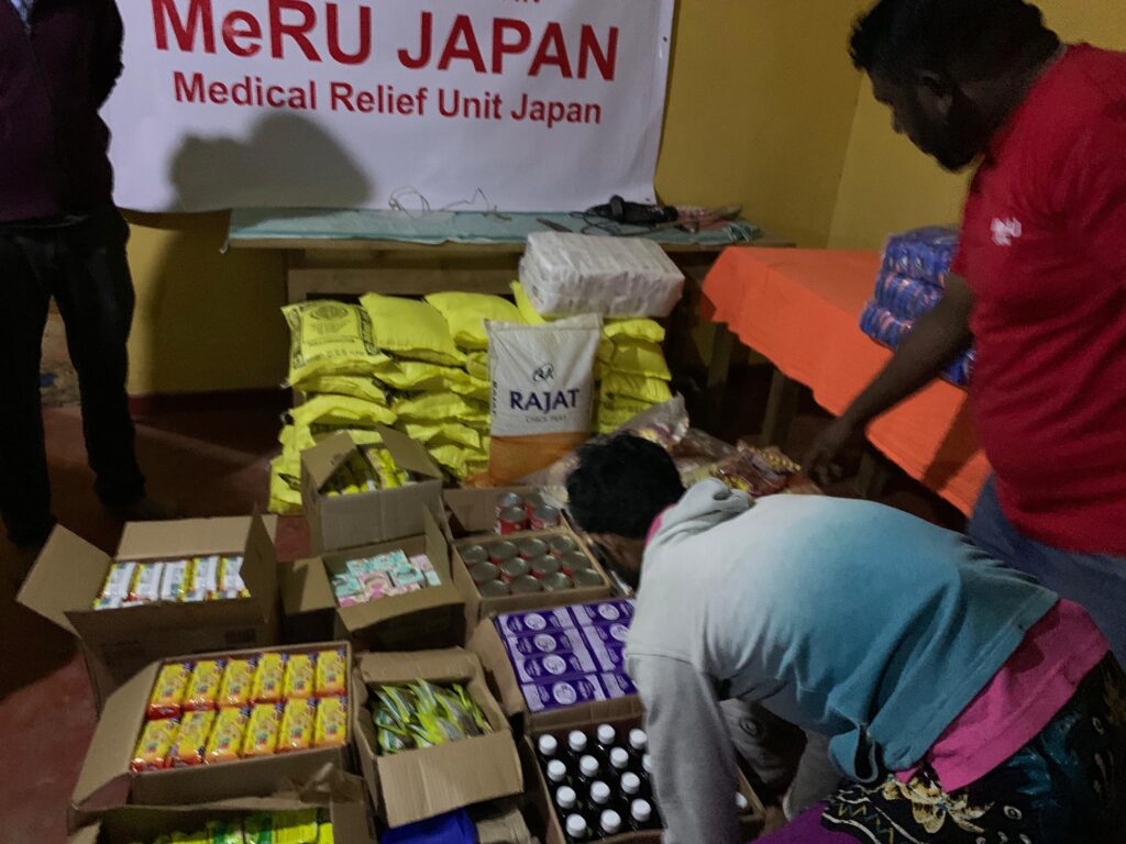 悪路で大型トラックが使えず、第一陣は小型トラック2台+SUVで搬入。この地区にボランティア団体の支援は何処も来て無く、MeRUスリランカ支部が初めてでした。