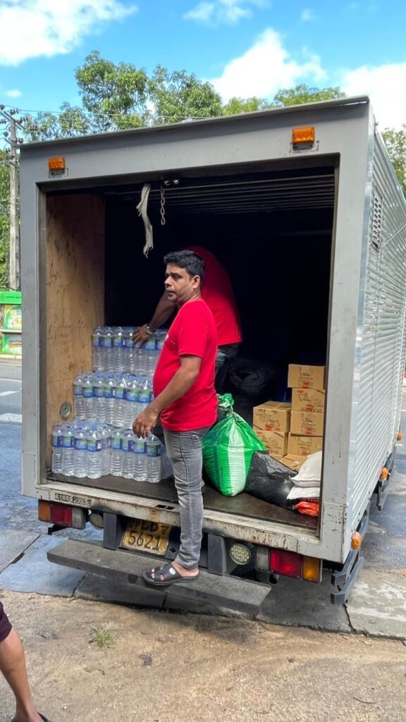 12月6日(土)朝 MeRUの支援物資が現地に届きスリランカ支部チームはコロンボ市を出発
